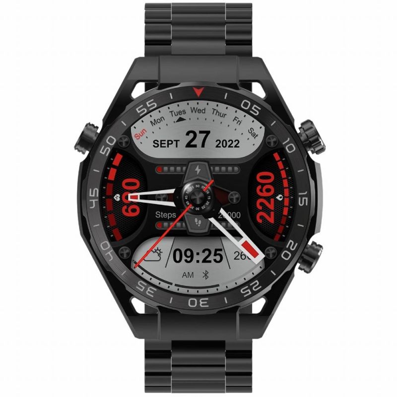 Stylish, functional, innovative. Durable metal case, mineral and tempered glass, 1.39-inch touchscreen with a resolution of 360*360 pixels, call function, music player control, plenty of sports modes, powerful battery.