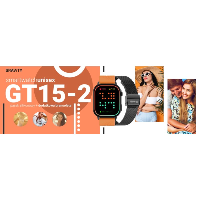 Gravity GT15-2 Smartwatch Orange Silicone Strap + Black Bracelet