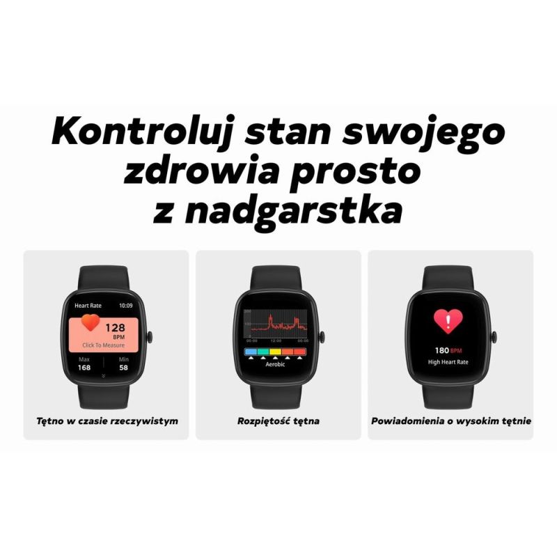 The 1.83" TFT display (240×284 px) looks perfect – clear, touch-sensitive, and responsive. Plus, dial personalization, animated graphics, and a menu in Polish – everything you need to match your watch to your style, mood, and occasion.
