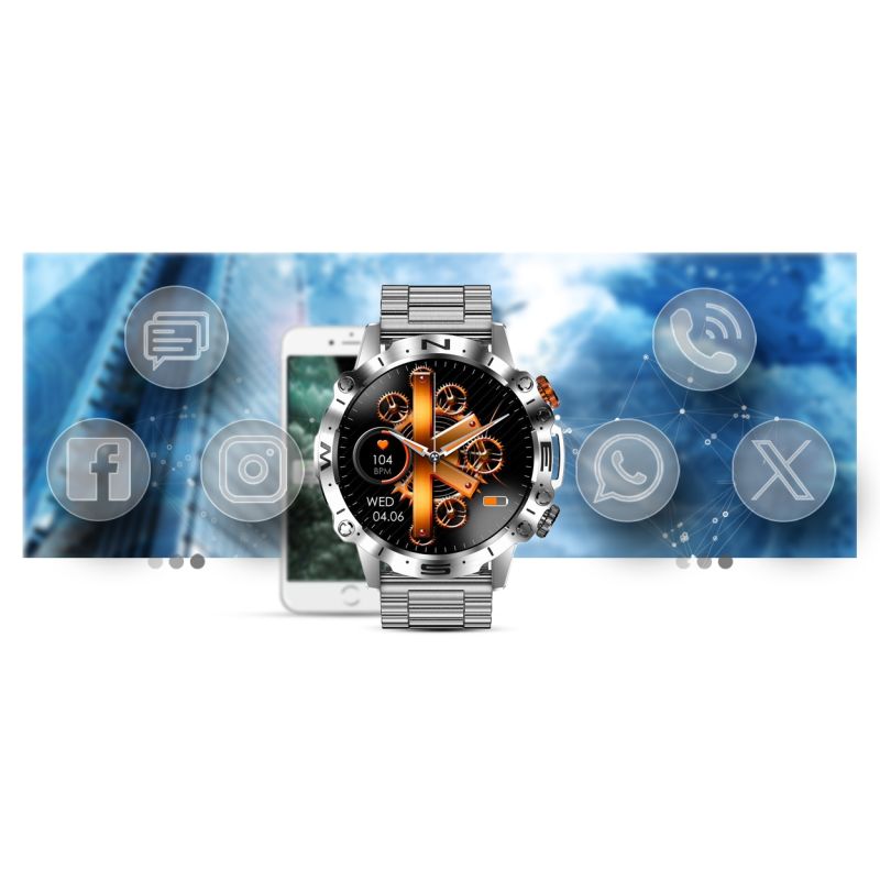 With this smartwatch, you won't miss what's important. From now on, text messages, Facebook, Twitter, WhatsApp, Skype, etc., are displayed on the watch face in real time. No need to interrupt your work or activity – just raise your arm to view the messages!