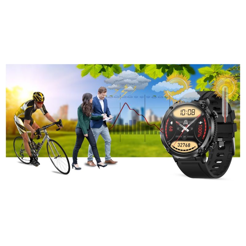 Good equipment should keep up with its owner, which is why the smartwatch has an IP67 water resistance rating. The smartwatch is resistant to light splashes and light contact with water. The smartwatch is also resistant to light dust and atmospheric dirt. The smartwatch should not be worn for diving, diving, sauna use, or exposure to salty, hot, or icy water.