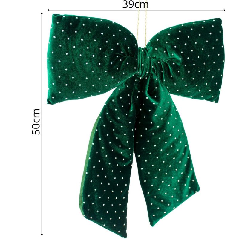 The GREEN DECORATIVE BOW 39x50CM MICA is a classic, yet natural accent that beautifully enhances the magic of Christmas. The deep green brings peace and harmony, and pairs beautifully with both traditional and modern decorations.