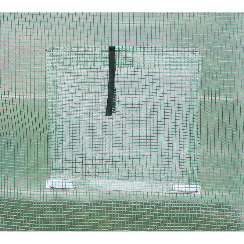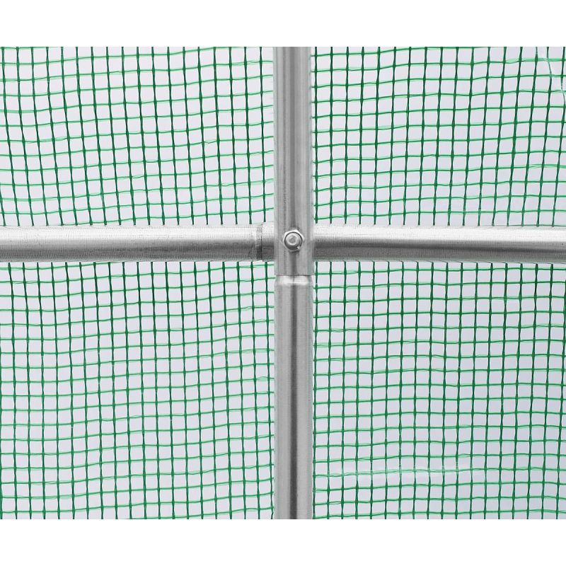 The greenhouse has six windows with mosquito nets and foil curtains that protect against excess moisture while ensuring optimal airflow and adequate light access. It also has a 120 cm wide, zippered door that allows for convenient entry and exit.