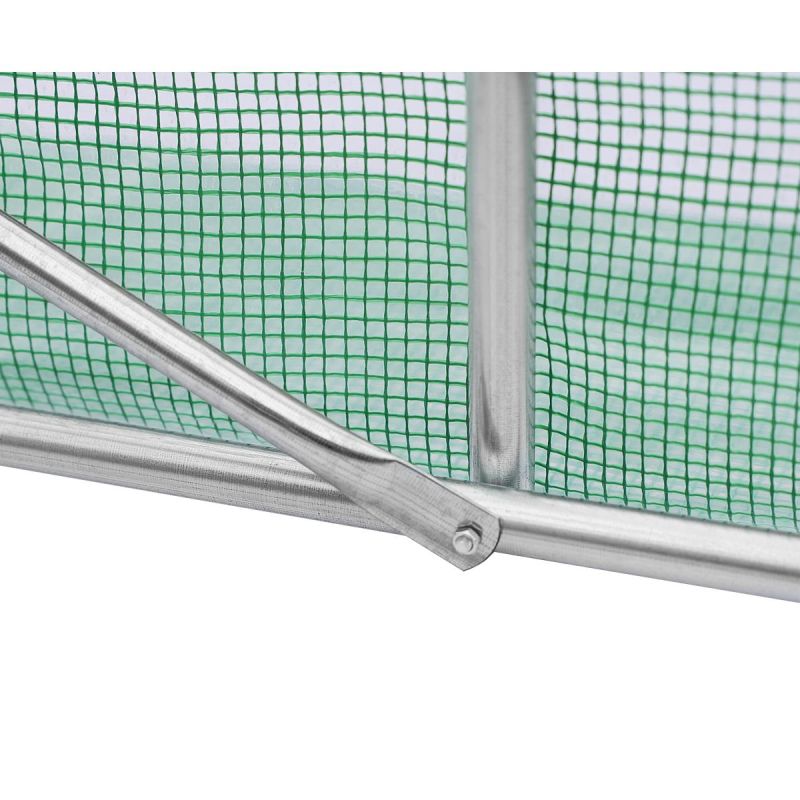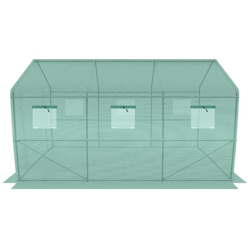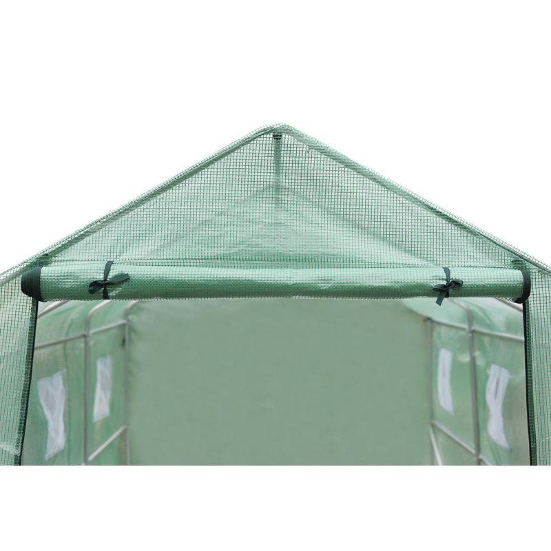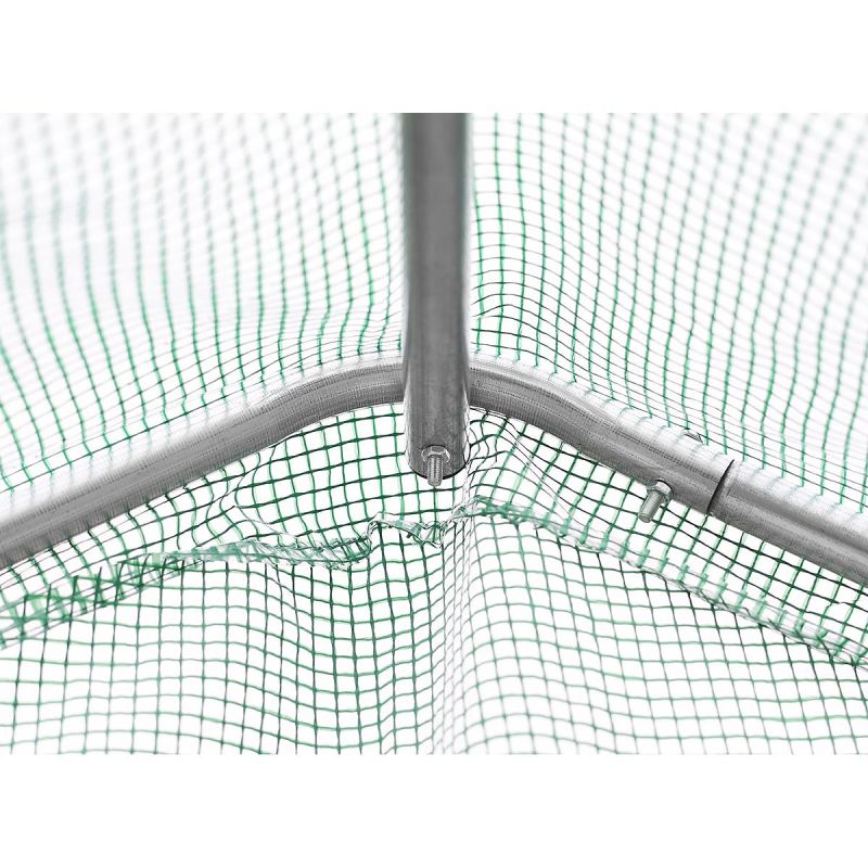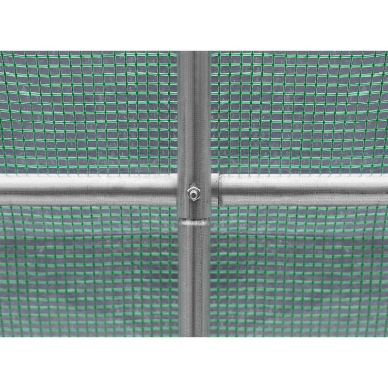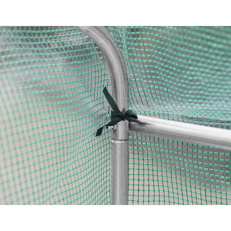 The greenhouse has been thoughtfully designed. It features six windows with mosquito nets, which can be closed or opened from the outside at any time, allowing you to regulate the amount of light entering the tunnel, and a comfortable 120 cm wide door with a zipper.