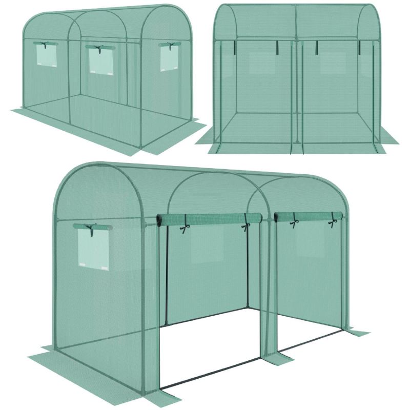 GREENHOUSE GARDEN TUNNEL TWO ENTRANCES FOR TOMATOES AND CUCUMBERS 200x100x180CM GREEN