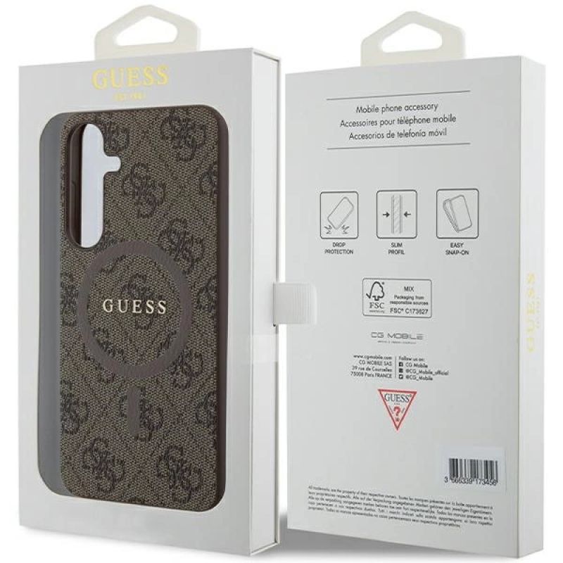 Guess 4G Collection Leather Metal Logo MagSafe case for Samsung Galaxy S24+ - brown