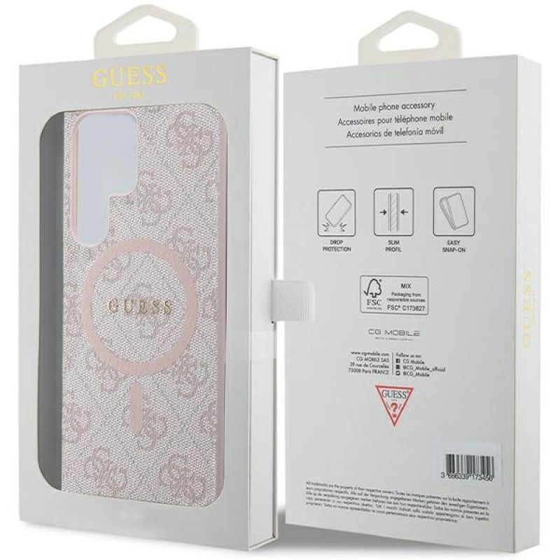 Guess 4G Collection Leather Metal Logo MagSafe Case for Samsung Galaxy S24 Ultra - Pink