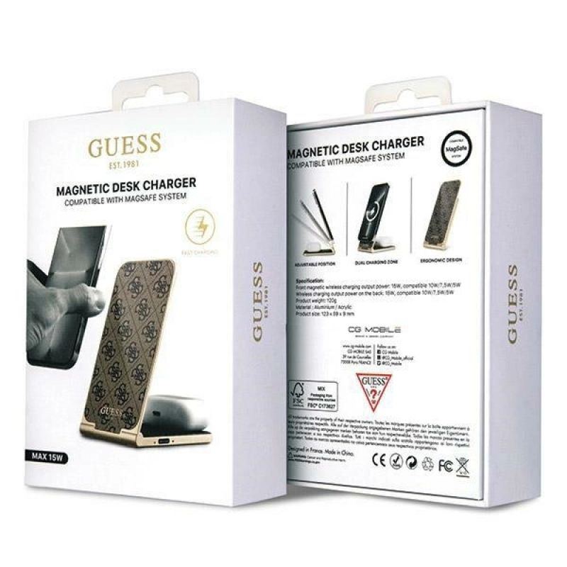 Guess 4G Pattern MagSafe foldable 2in1 15W inductive charger - brown
