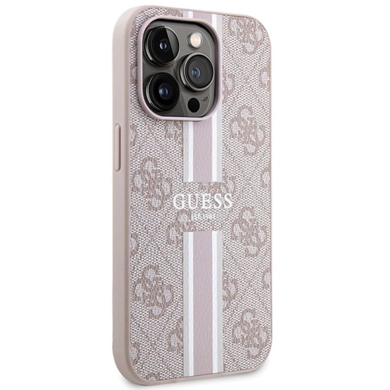 Guess 4G Printed Stripes MagSafe case for iPhone 15 Pro - pink