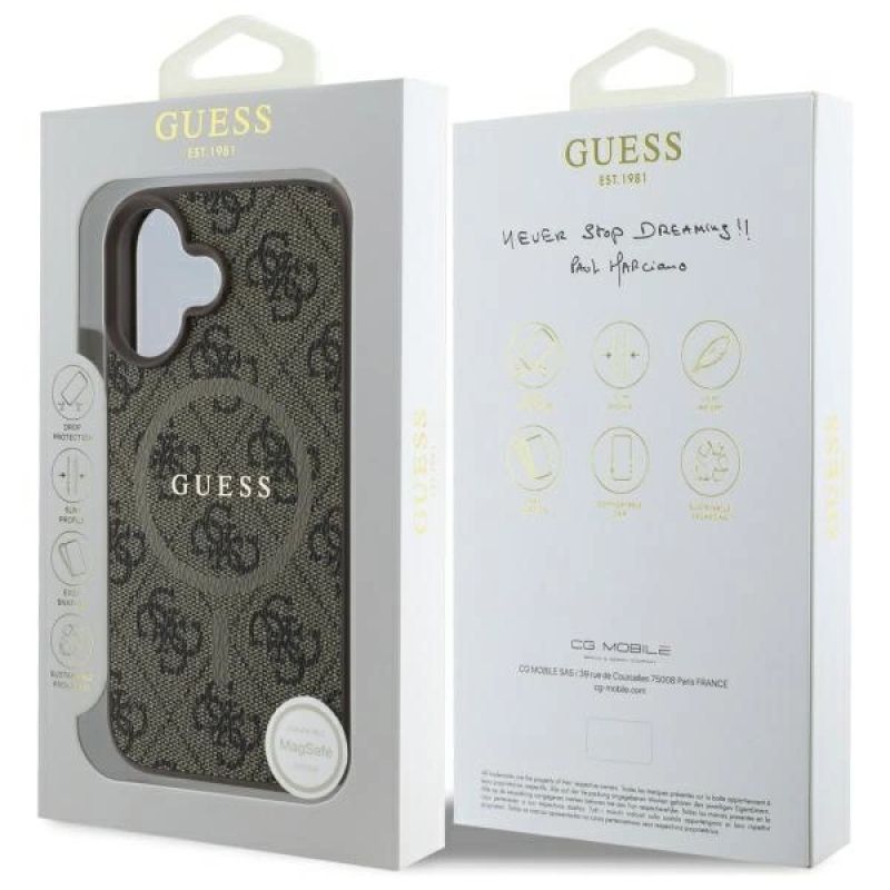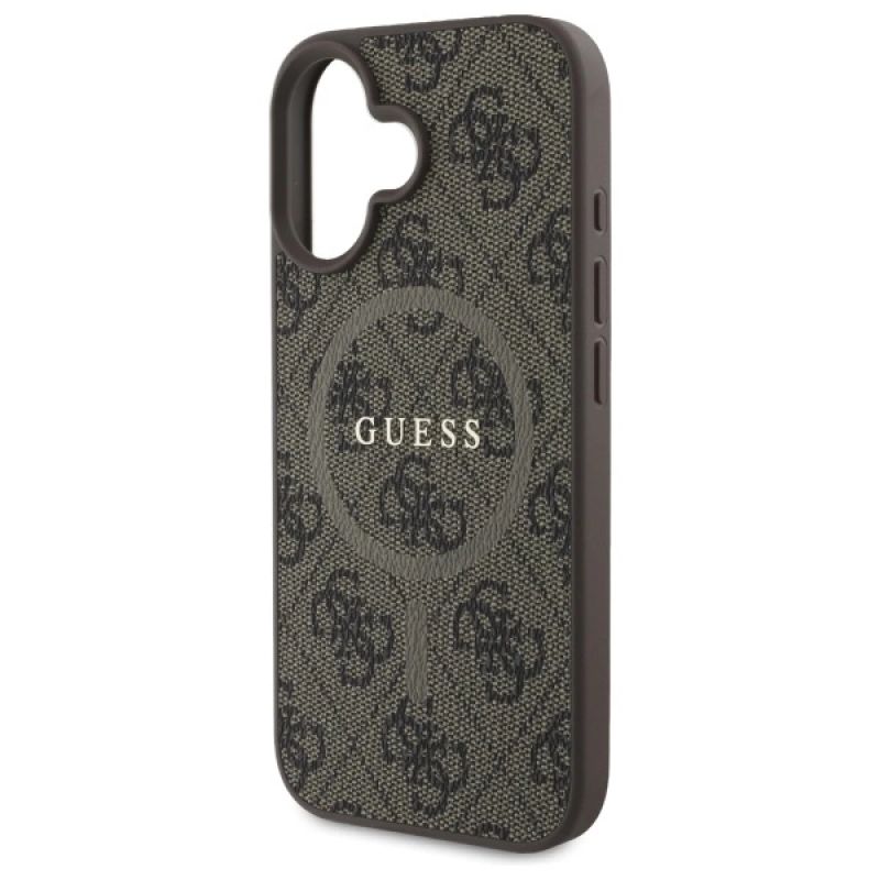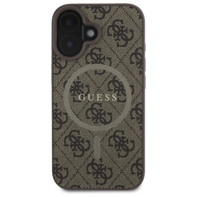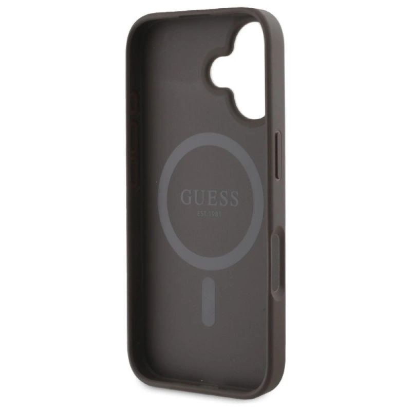 Guess 4G Ring Classic Logo MagSafe iPhone 16 Case - Brown