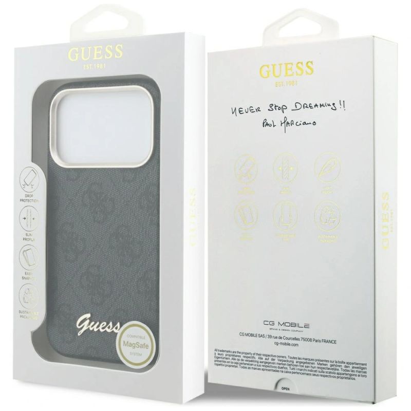 Collection Guess 4G Script MagSafe Type Hardcase Material TPU / PC Color Black Compatibility iPhone 17 Pro| Name | Details |