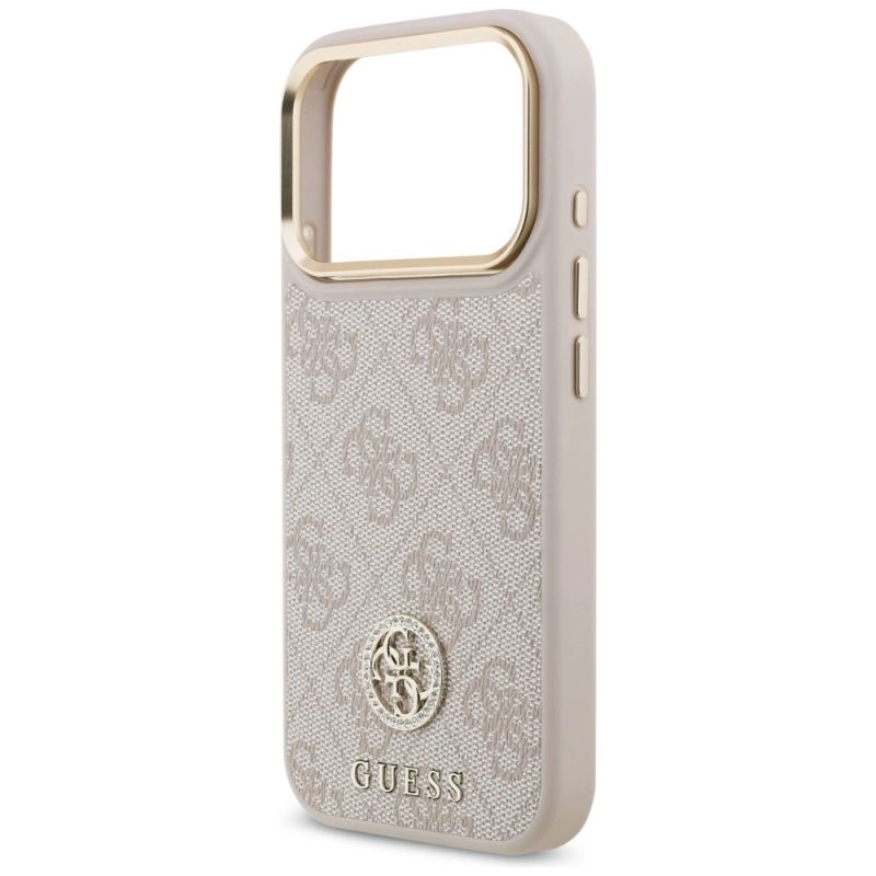 Guess 4G Strass Logo & Big Strap Metal Buttons MagSafe Case for iPhone 17 Pro - Pink