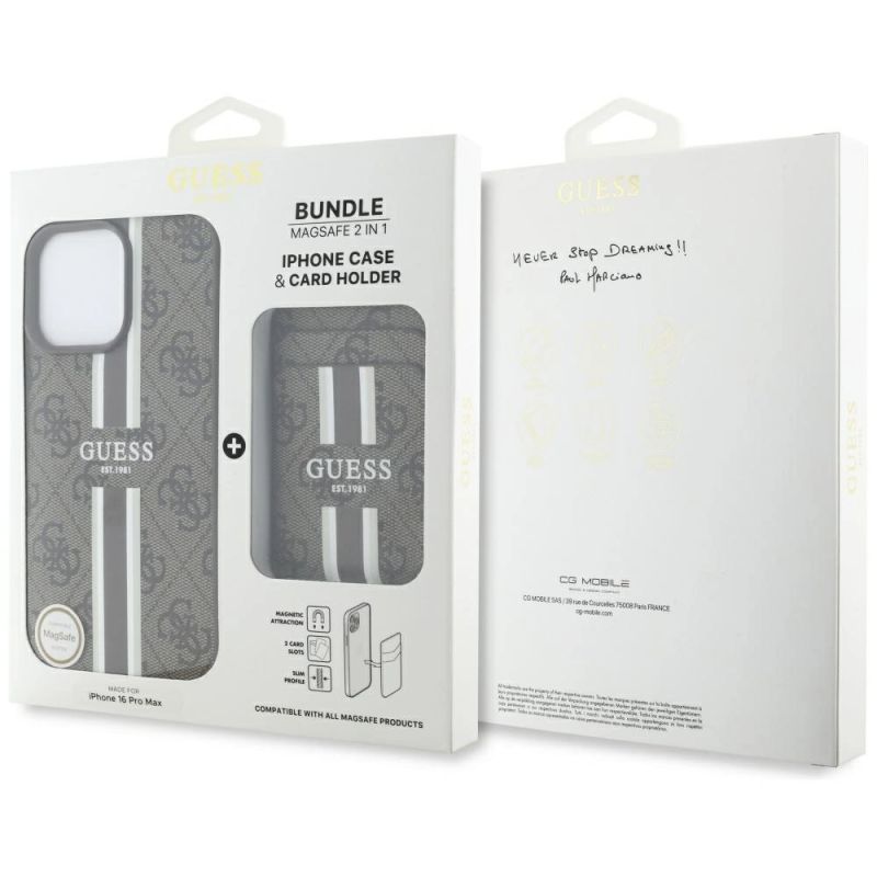 Collection 4G Stripes with Magsafe wallet Type Hardcase Material TPU / PC / Eco-leather Color Brown Compatibility iPhone 16 Pro Max 6.9"| Name | Details |