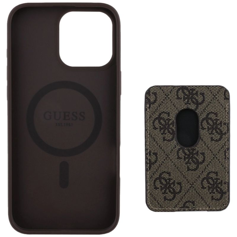 Guess 4G Stripes case with Magsafe wallet for iPhone 16 Pro Max brown