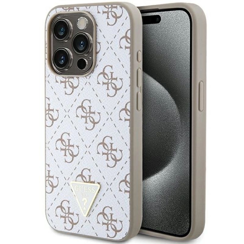 Guess 4G Triangle Metal Logo Case for iPhone 15 Pro - White
