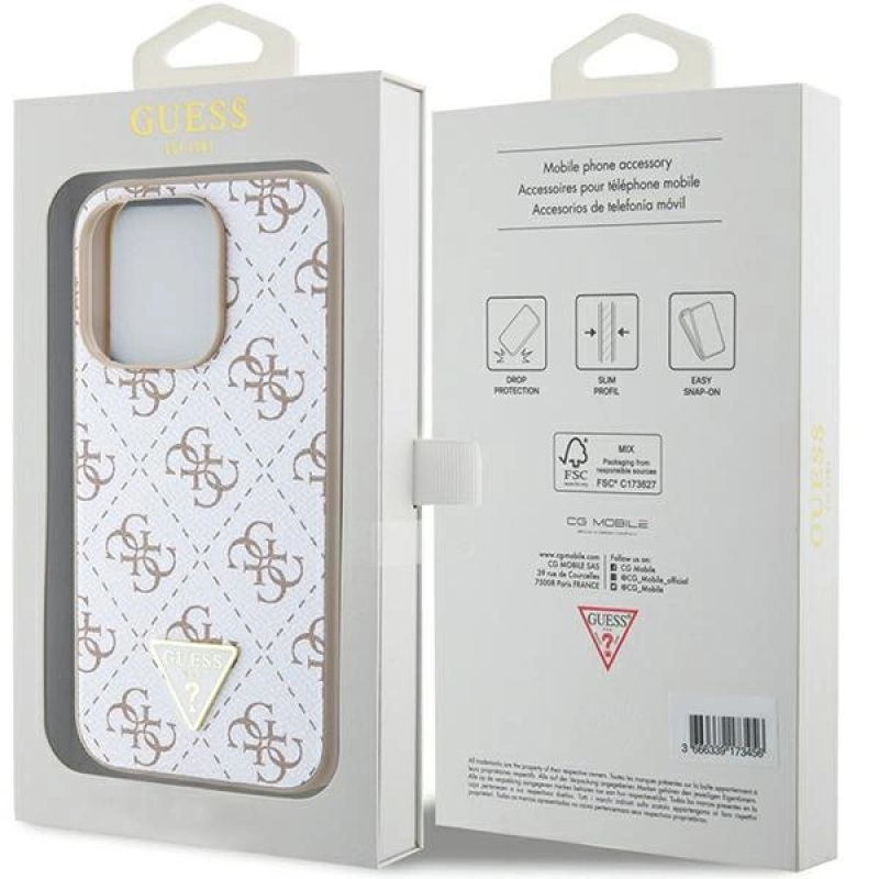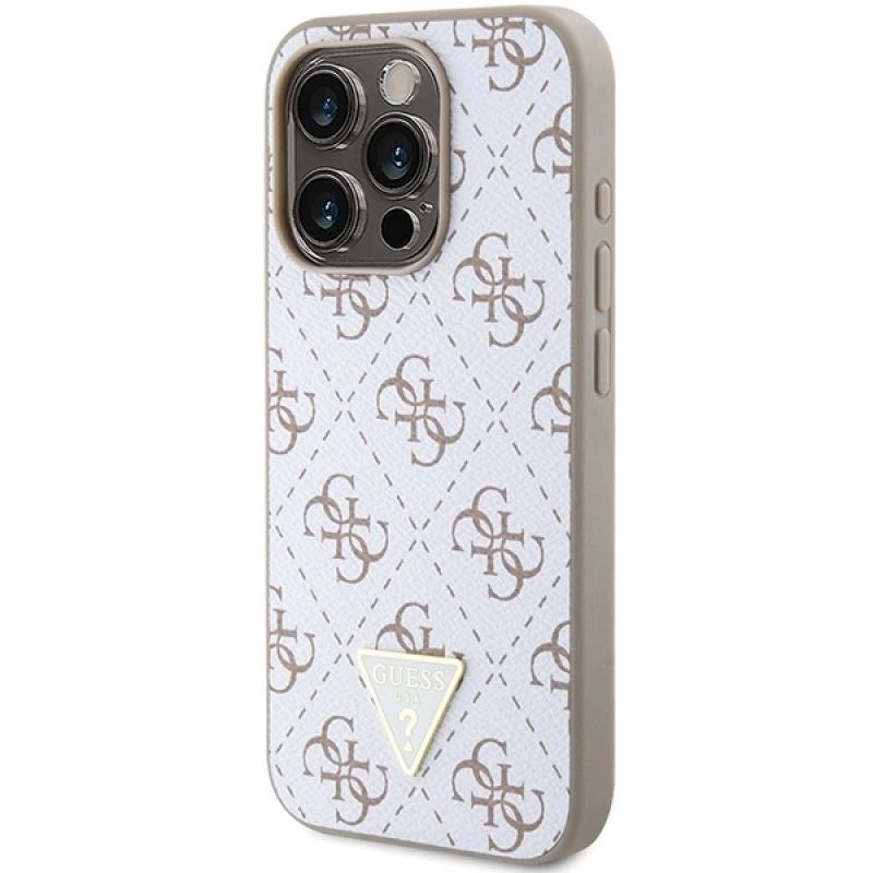 Collection 4G Triangle Metal Logo Type Hardcase Material TPU / PC / Eco-leather Color White Compatibility iPhone 15 Pro 6.1"| Name | Details |
