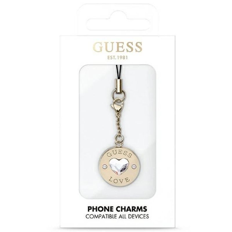 Guess case GUCPMHGLD Phone Strap Heart Diamond Charm with Rhinestones