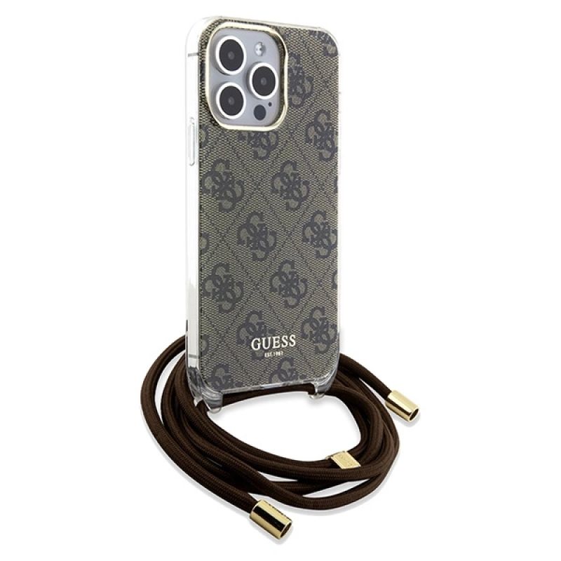 Guess Crossbody Cord 4G Print case for iPhone 15 Pro Max - brown