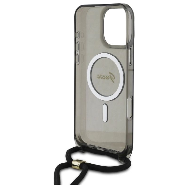 Guess Crossbody Cord Script MagSafe Case for iPhone 16 Pro - Black