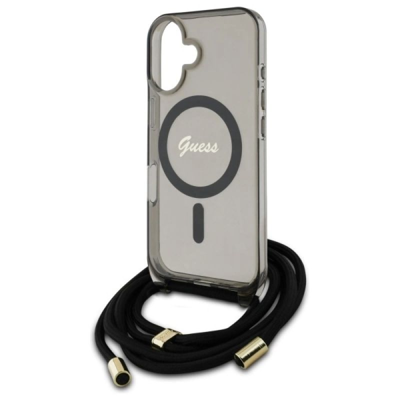 Guess Crossbody Cord Script MagSafe iPhone 16 Case - Black