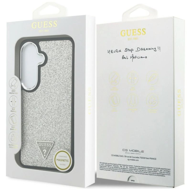 Brand Guess Collection Fixed Glitter Triangle Type Protective case Material TPU / PC / Eco-leather Color Silver Compatibility Samsung Galaxy S26| Name | Details |