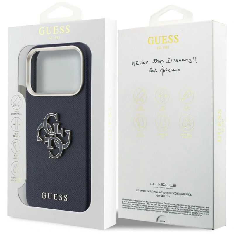 Collection Guess FW Resin Logo Type Hardcase Material Eco-leather / TPU / PC Color Blue Compatibility iPhone 17 Pro Max| Name | Details |