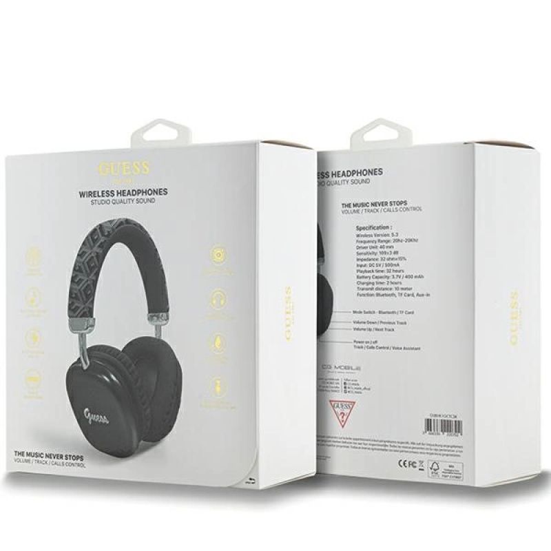 On the outside of the ear cups there is a large Guess logo in vintage style - it confirms the highest quality and authenticity of the product.