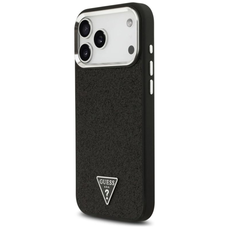 Guess Glitter Triangle Logo MagSafe Case for iPhone 17 Pro Max - Black
