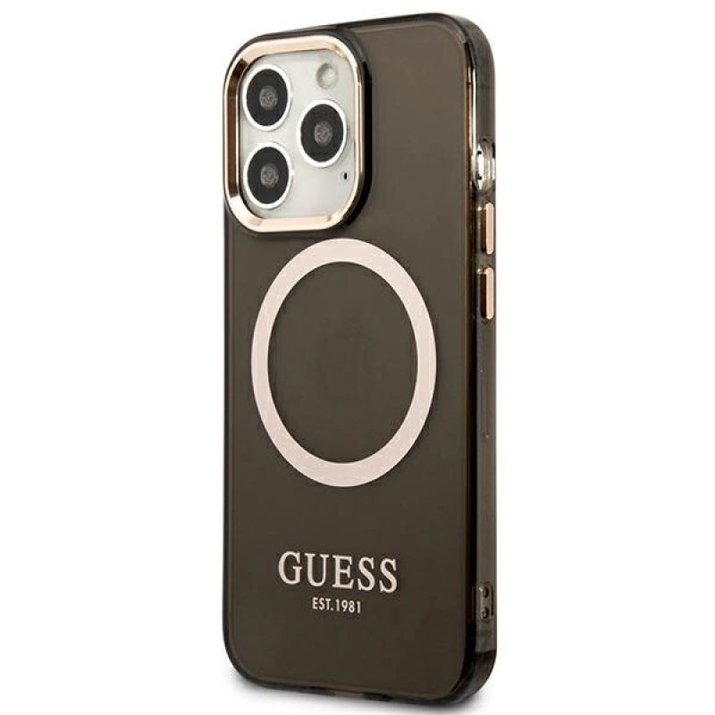 Guess Gold Outline Translucent MagSafe Case for iPhone 13 Pro / iPhone 13 - Black