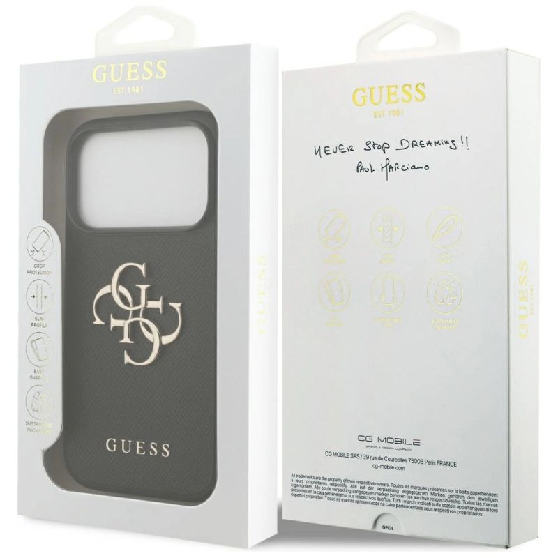 Mark Guess Collection Grained Big 4G & Classic Logo Type Protective case Material TPU / PC / Eco-leather Color Black Compatibility iPhone 17 Pro| Name | Details |
