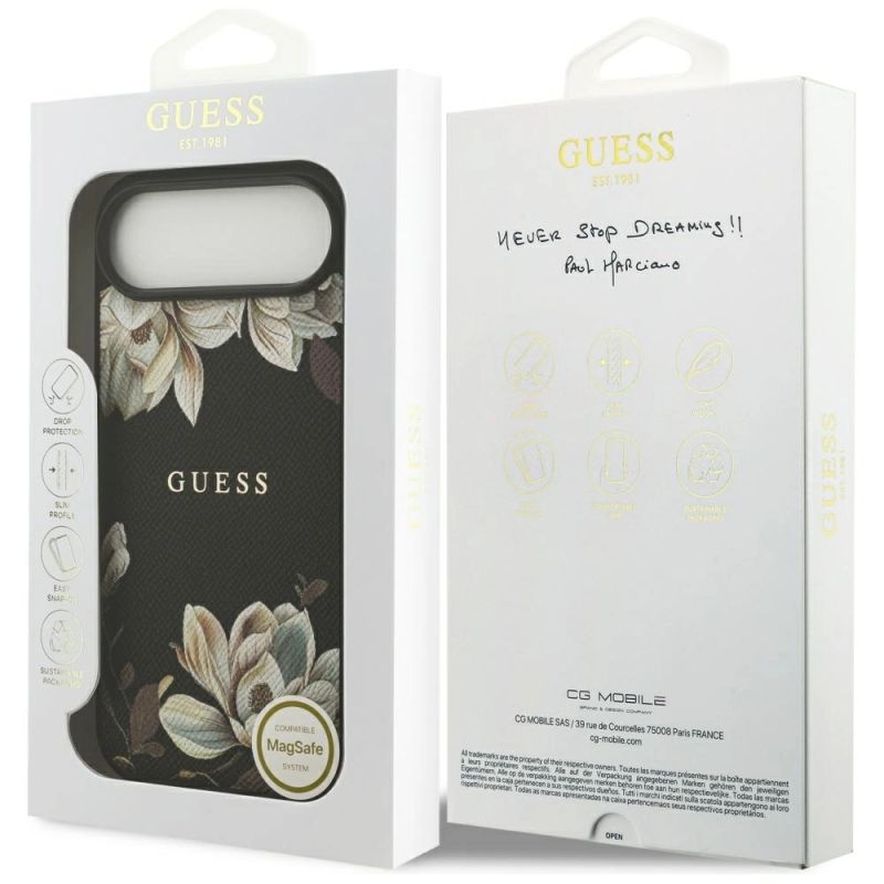 4. Guess Grained Flowers Classic Logo MagSafe case for iPhone Air - black