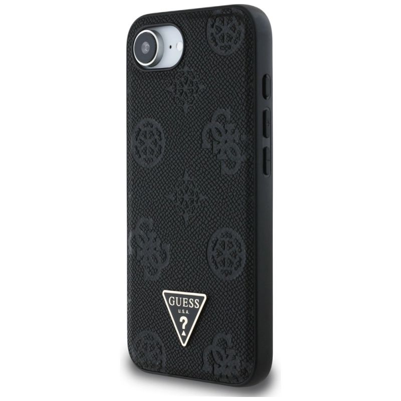 Guess Grained Hot Stamp Peony Triangle Logo MagSafe Case for iPhone 16e - Black