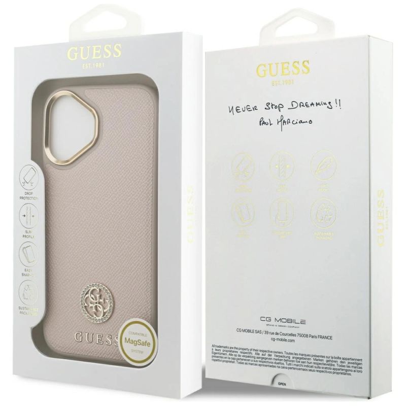 Mark Guess Collection Grained Strass Logo MagSafe Type Protective case Material TPU / PC / Eco-leather Color Pink Compatibility iPhone 17| Name | Details |
