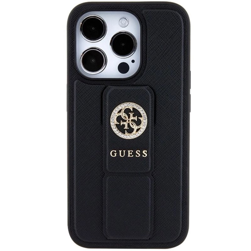 Guess Grip Stand 4G Saffiano Strass case for iPhone 15 Pro Max - black