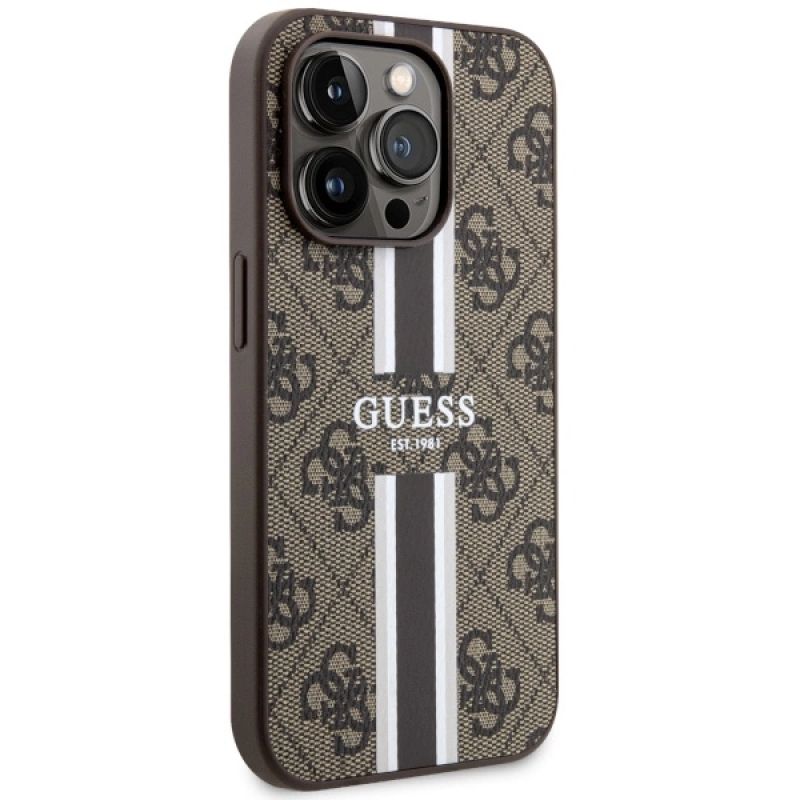 Guess GUHMP14LP4RPSW iPhone 14 Pro 6.1" brown/brown hardcase 4G Printed Stripes MagSafe