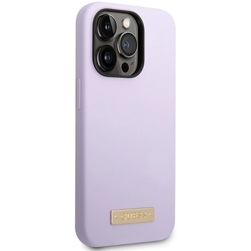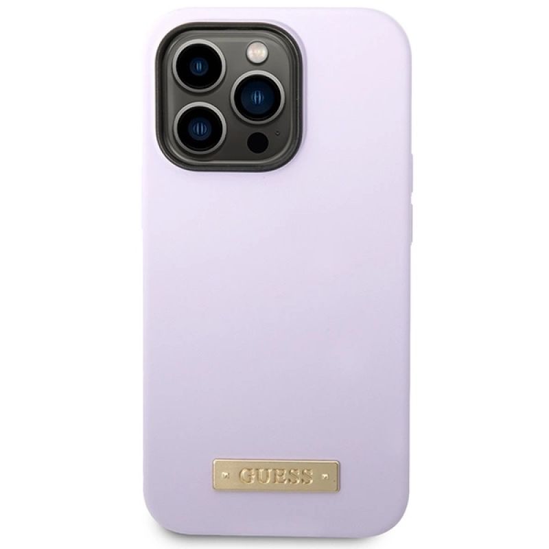 Guess GUHMP14LSBPLU iPhone 14 Pro 6.1" purple/purple hard case Silicone Logo Plate MagSafe