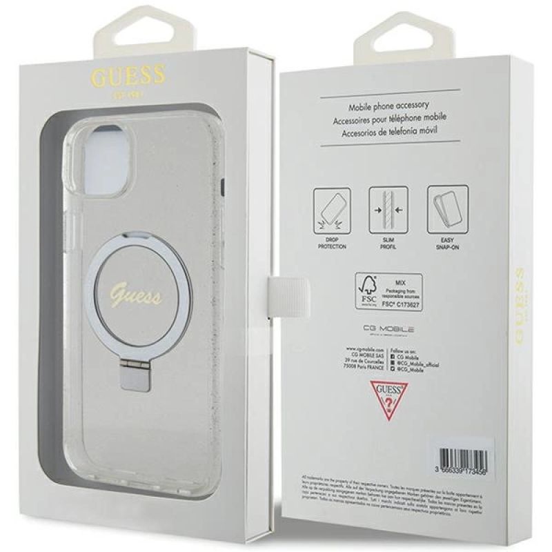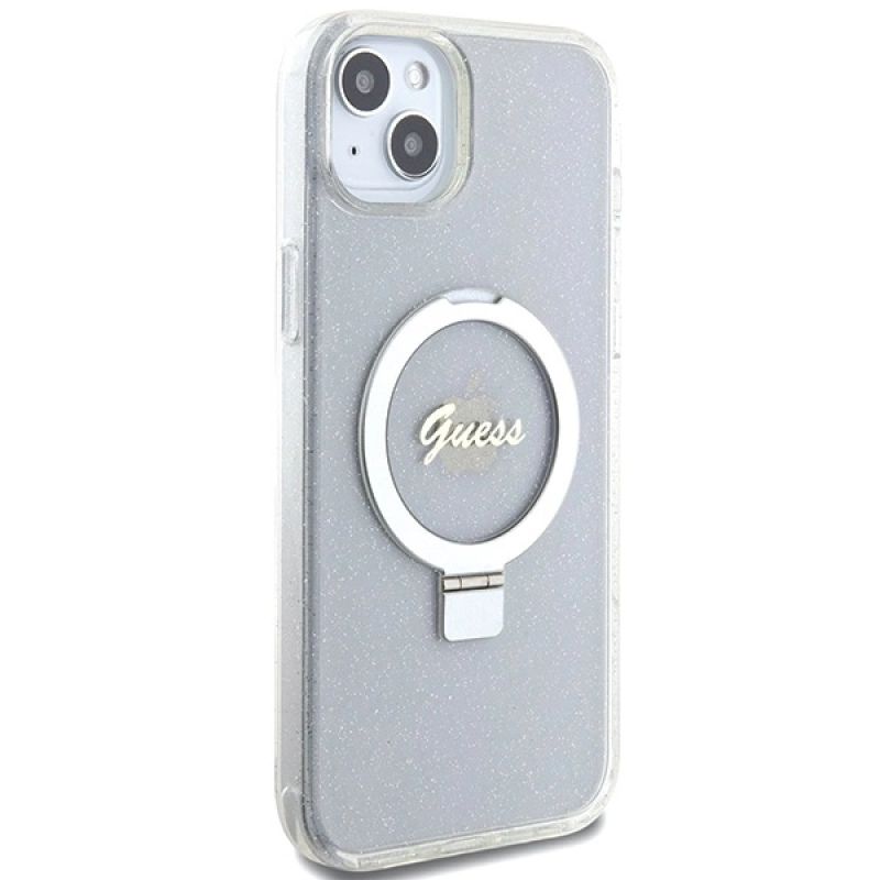 Guess GUHMP15MHRSGSD iPhone 15 Plus / 14 Plus 6.7" transparent/transparent hardcase Ring Stand Script Glitter MagSafe