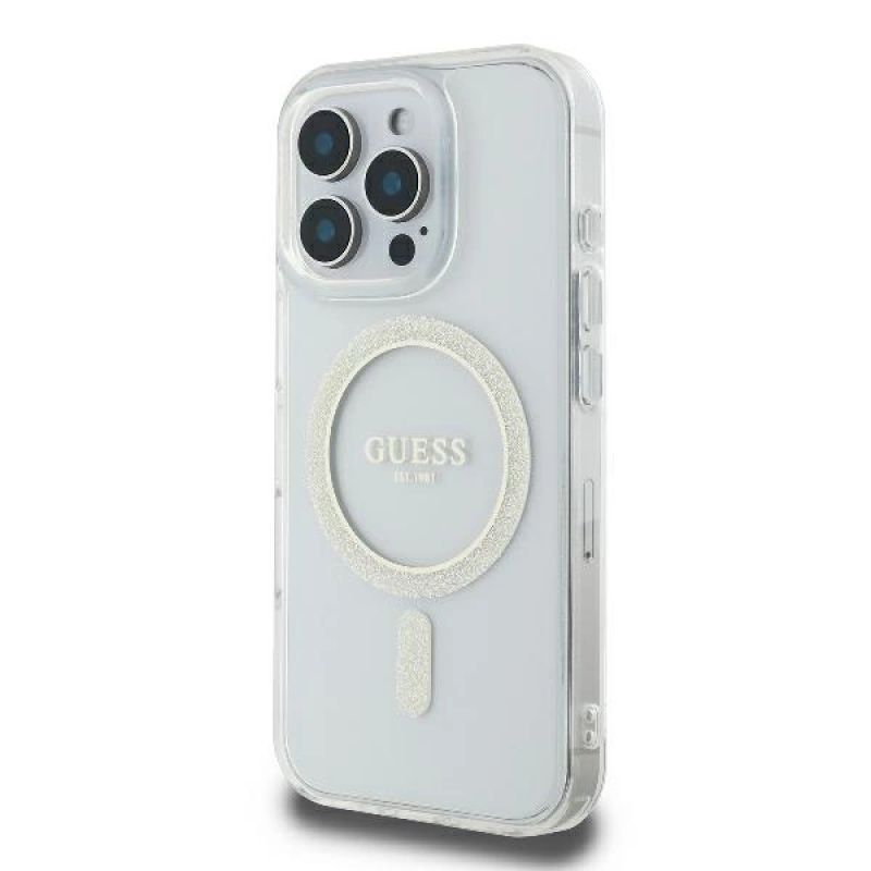 Guess GUHMP16LHFGERET iPhone 16 Pro 6.3" transparent hardcase IML Glitter Circle MagSafe