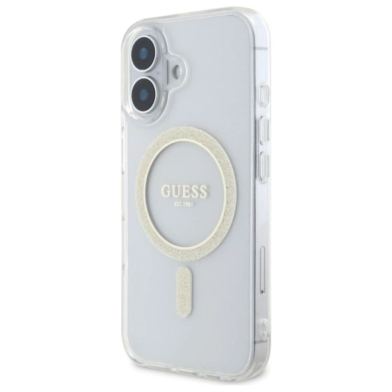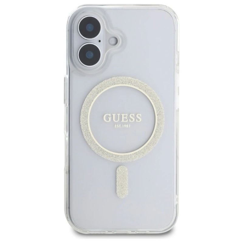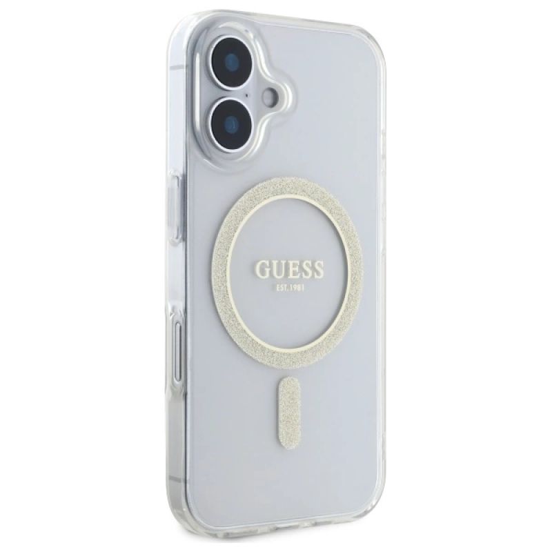 Guess GUHMP16MHFGERET iPhone 16 Plus 6.7" transparent hardcase IML Glitter Circle MagSafe