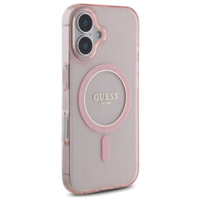 Guess GUHMP16SHFGEREP iPhone 16 6.1" pink/pink hardcase IML Glitter Circle MagSafe