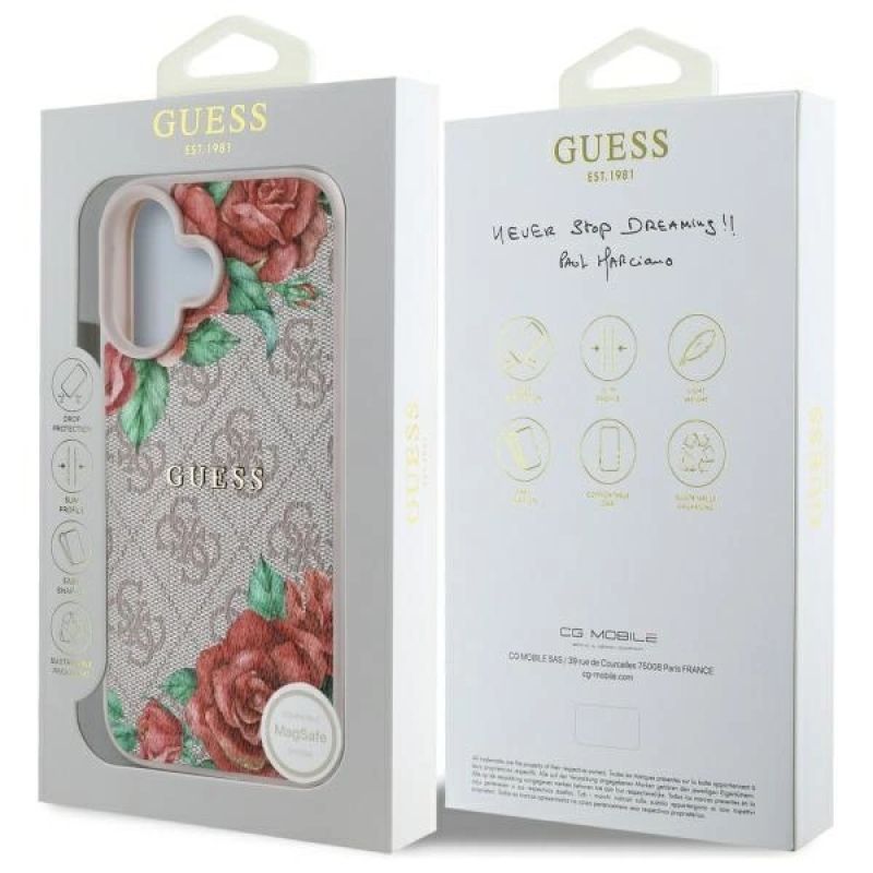 Guess GUHMP16SP4ROPEMCP iPhone 16 6.1" pink/pink hardcase 4G Flowers Print MagSafe