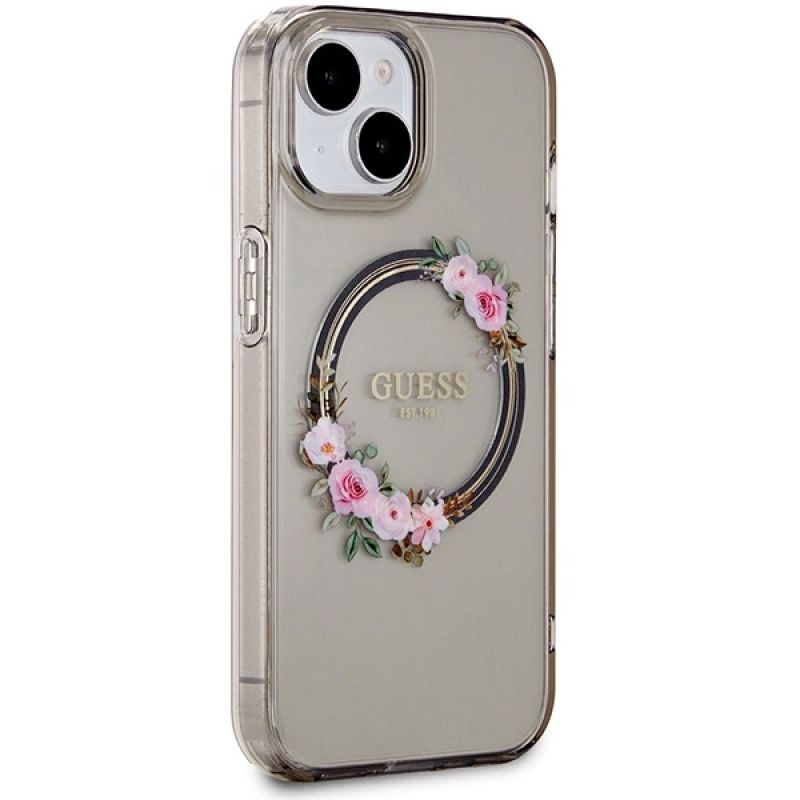 Guess IML Flowers Wreath MagSafe case for iPhone 15 / 14 / 13 - black