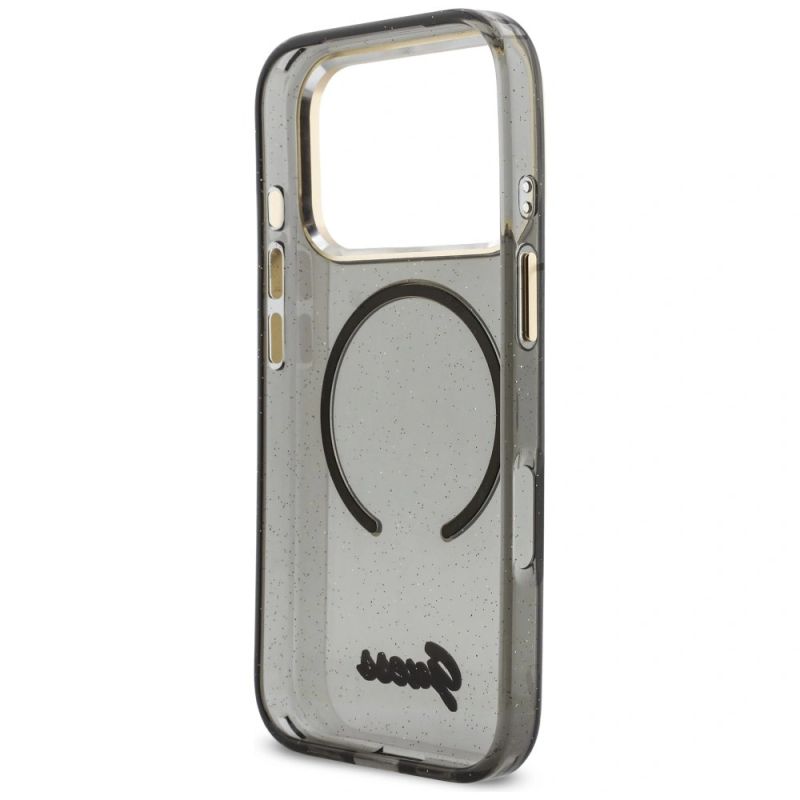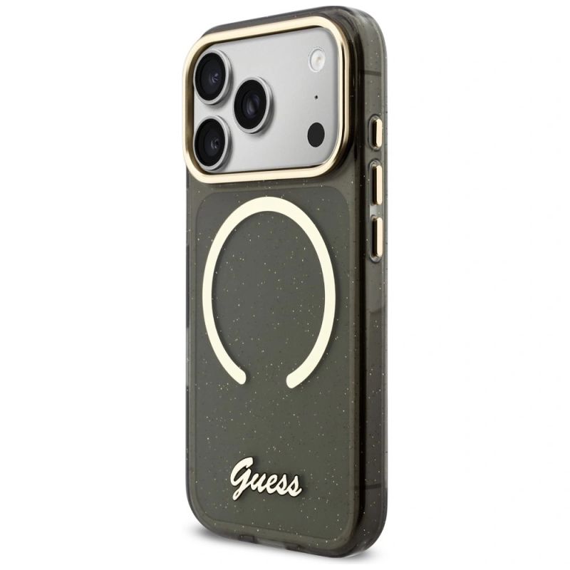 Guess IML Glitters Script Strap MagSafe Case for iPhone 17 Pro - Black