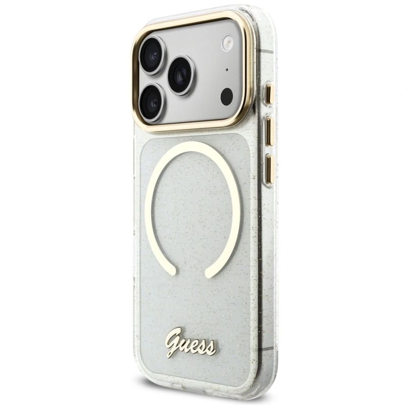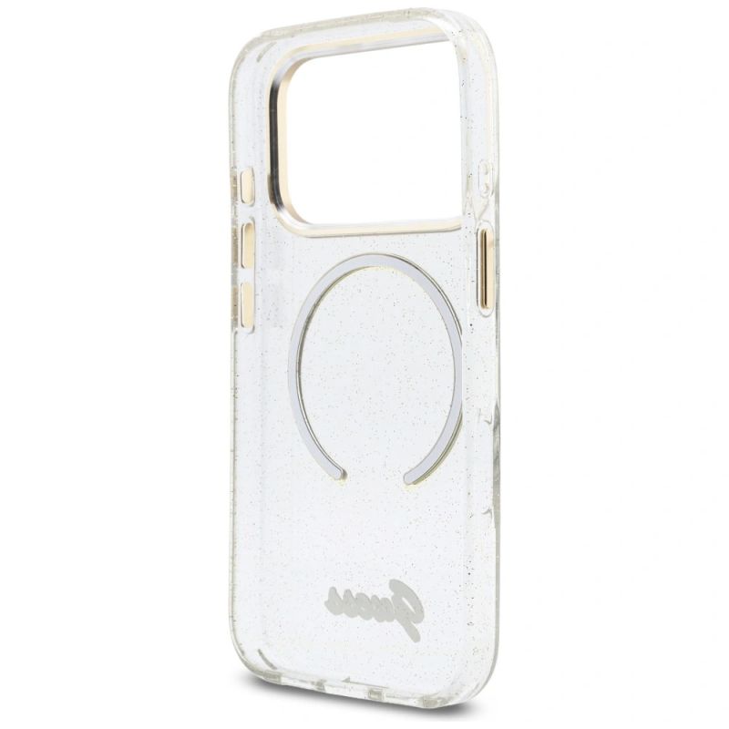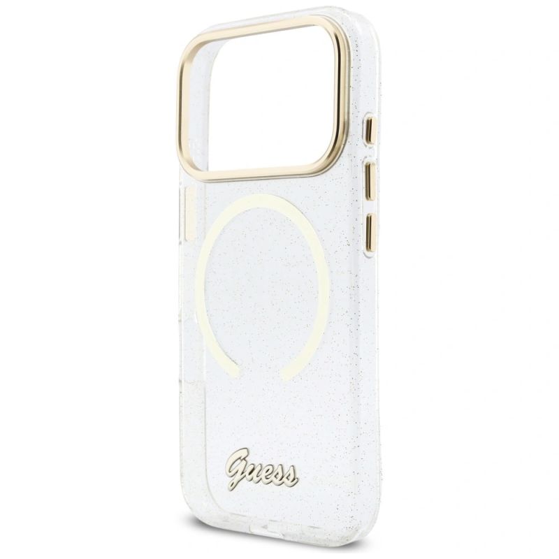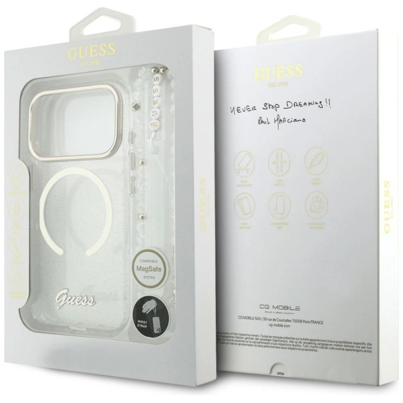 Guess IML Glitters Script Strap MagSafe Case for iPhone 17 Pro - Clear