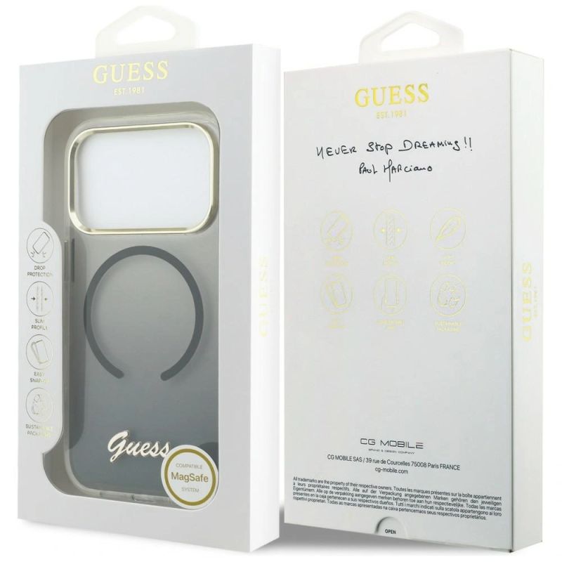 Guess IML Gradient Script Metal MagSafe Case for iPhone 17 Pro Max - Black
