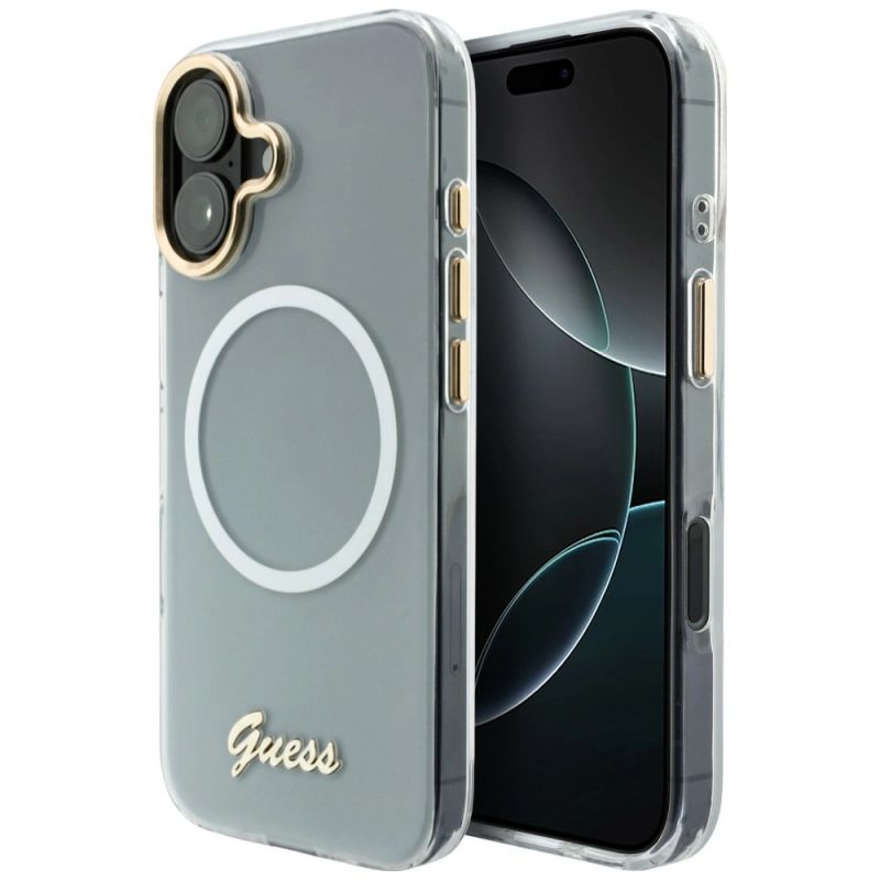 Guess IML Gradient Script Metal MagSafe Case for iPhone 17 - White