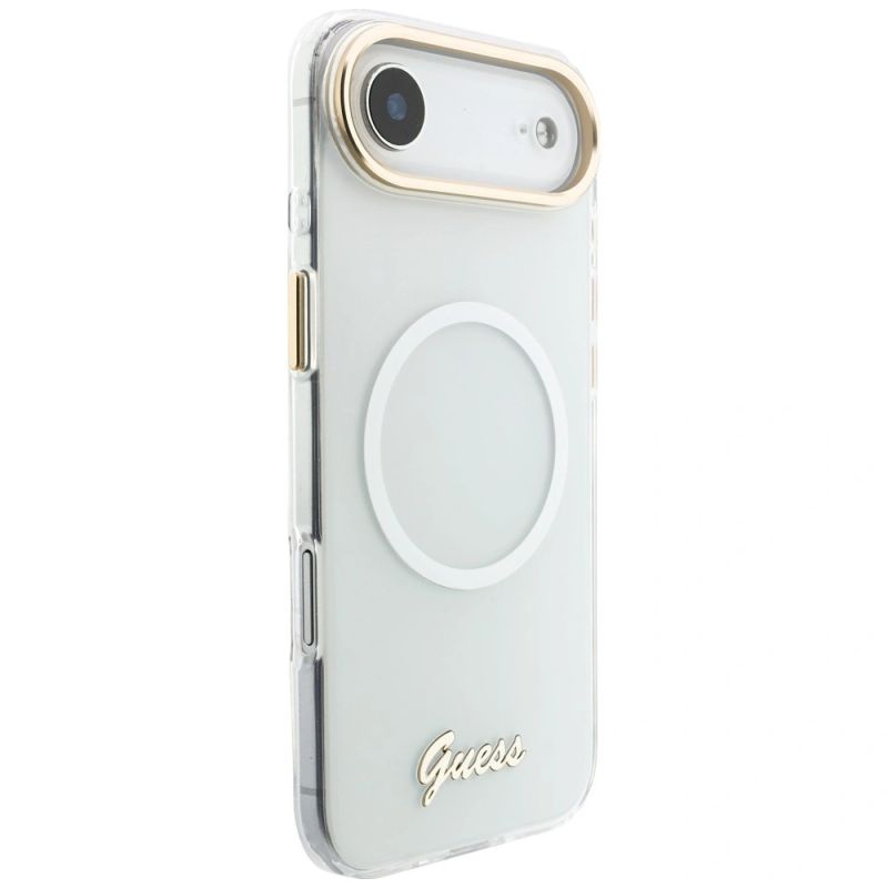 9. Guess IML Gradient Script Metal MagSafe Case for iPhone Air - White