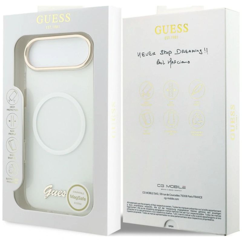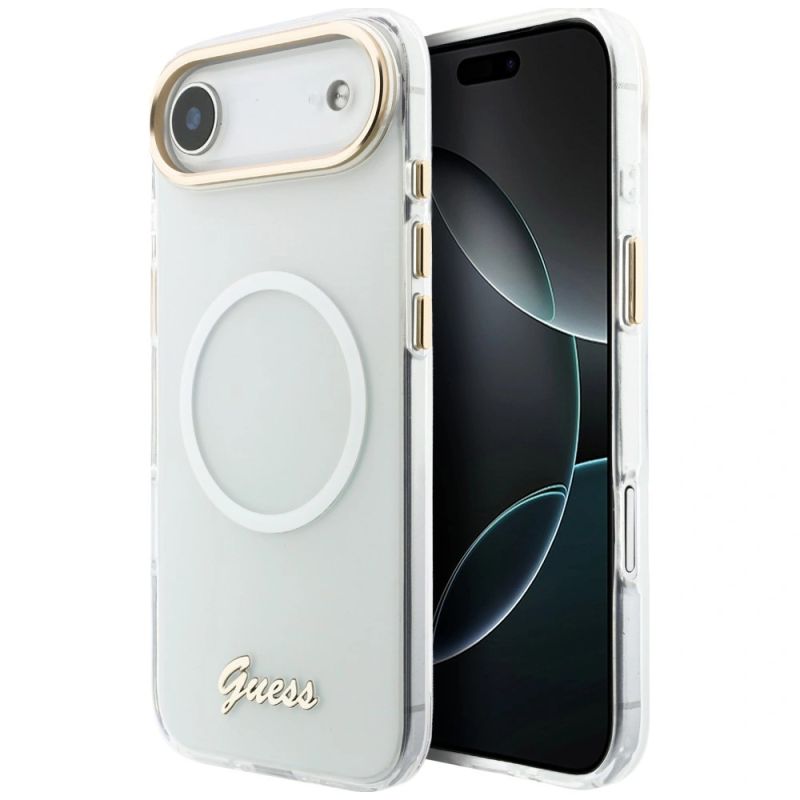 5. Guess IML Gradient Script Metal MagSafe Case for iPhone Air - White