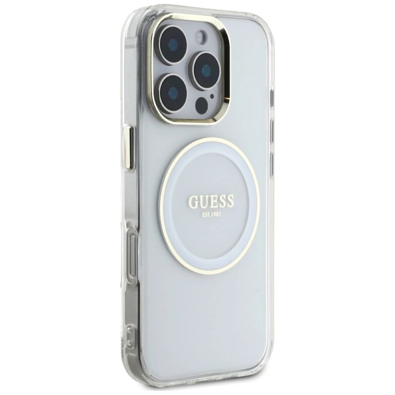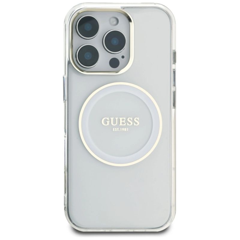Collection Guess IML Metal Colored Circle Classic Logo MagSafe case Type Hardcase Material TPU/PC Color White Compatibility iPhone 16 Pro 6.3"| Name | Details |