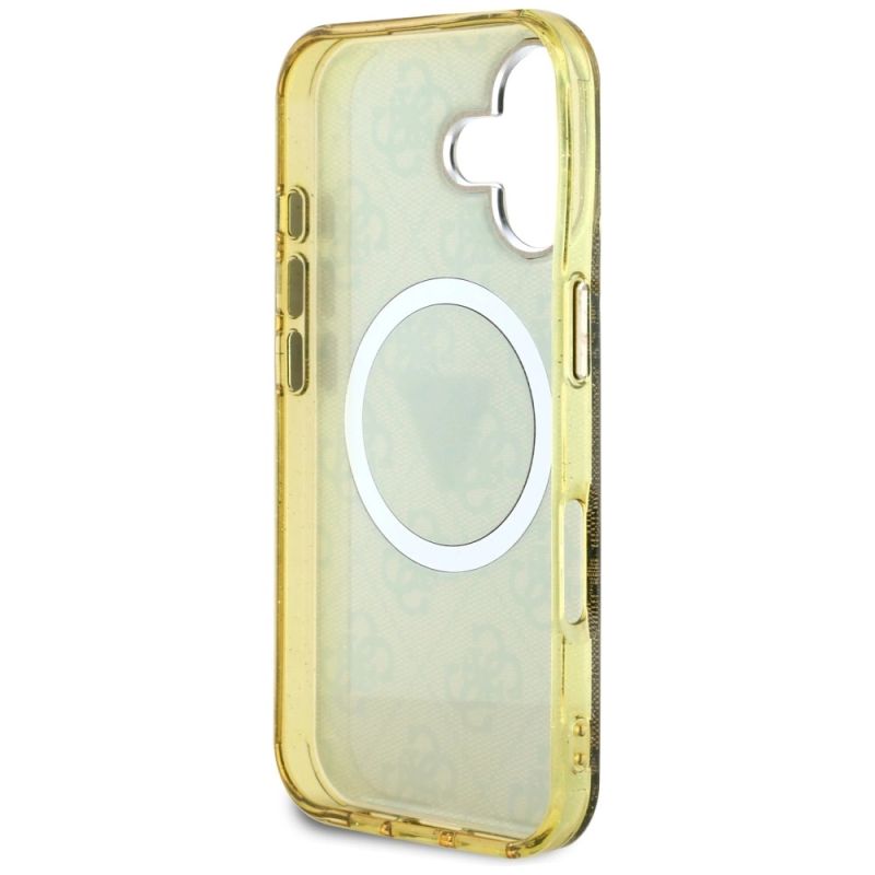 Guess IML Metal Glitter 4G Circle Triangle MagSafe Case for iPhone 16 - Brown
